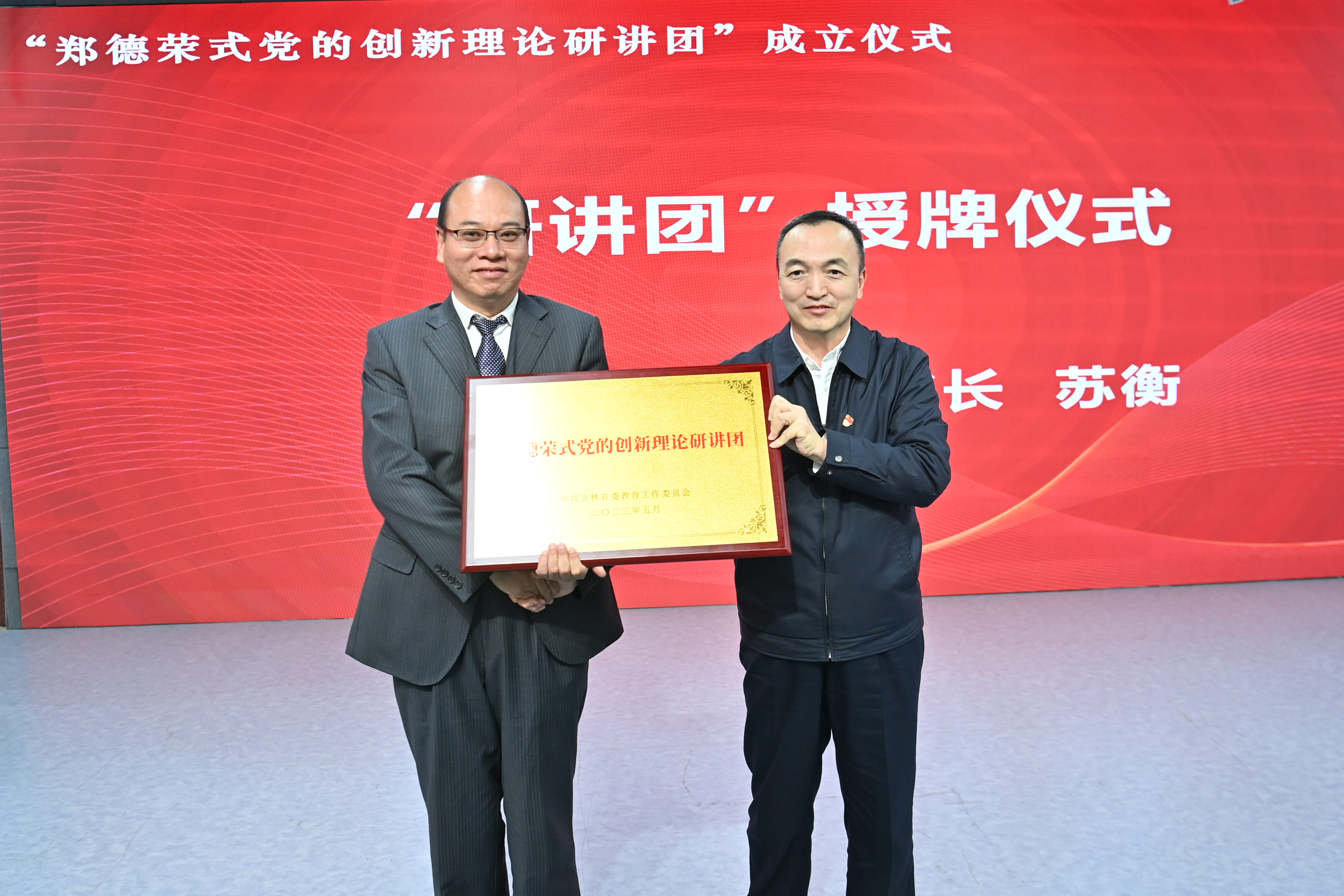 在“郑德荣式党的创新理论研讲团”成立仪式上,大家观看了郑德荣先进事迹访谈课《信仰的力量》,陈希哲宣读《关于成立“郑德荣式党的创新理论研讲团”的通知》,苏衡为“研讲团”授牌,张洪彬为“研讲团”代表颁发聘书。