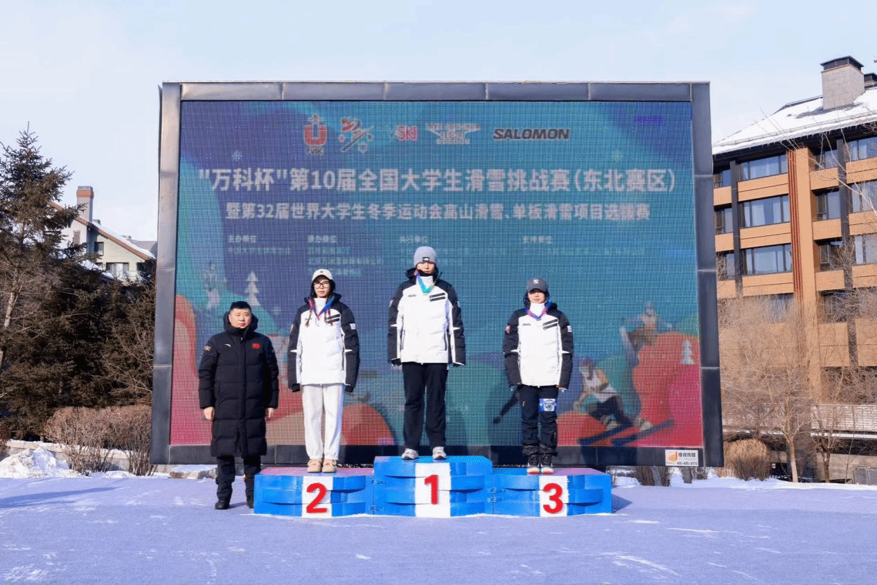 12月18至21日,由中国大学生体育协会主办的“万科杯”第10届全国大学生滑雪挑战赛(东北赛区)暨第32届世界大学生运动会高山滑雪、单板滑雪项目选拔赛在吉林松花湖滑雪场举行。我校高山滑雪队、单板滑雪队选派了经济与管理学院、文学院、美术学院、生命科学学院、体育学院(冰雪学院)等5个学院的21名运动员参加比赛,共斩获7金5银3铜的优异成绩,奖牌榜排名第一。